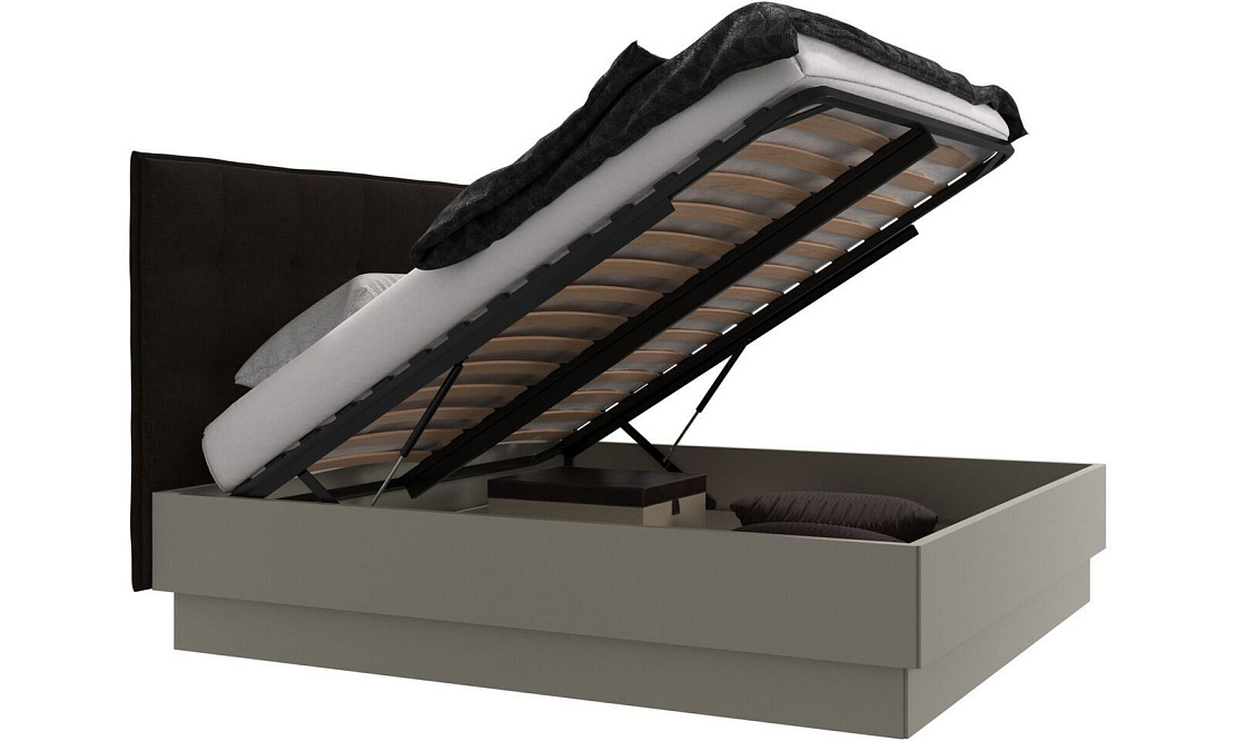 Кровать Lugano с местом для хранения - Napoli 2251 Ткань серо-коричневого цвета