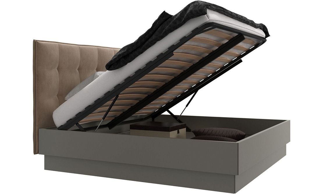 Эта современная кровать создаст атмосферу спокойствия и безмятежности в вашей спальне. Кровать с возвышенным основанием для более строгого вида подарит вам невероятный комфорт. Стеганое изголовье стало классикой. Оно создает атмосферу мягкости и уюта.