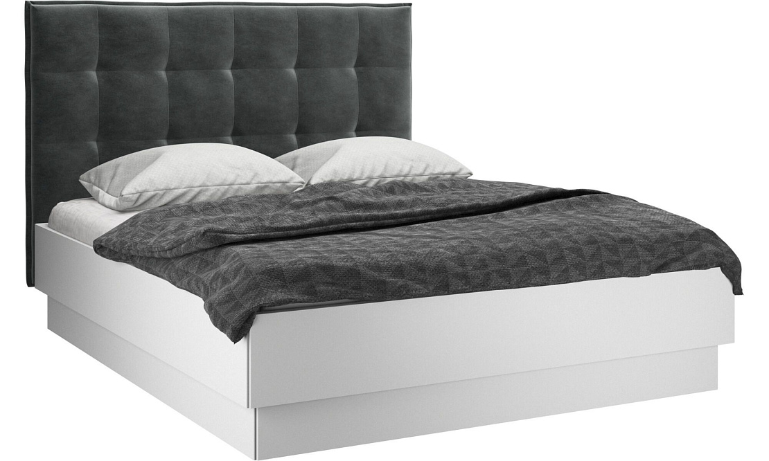 Эта современная кровать создаст атмосферу спокойствия и безмятежности в вашей спальне. Кровать с возвышенным основанием для более строгого вида подарит вам невероятный комфорт. Стеганое изголовье стало классикой. Оно создает атмосферу мягкости и уюта.