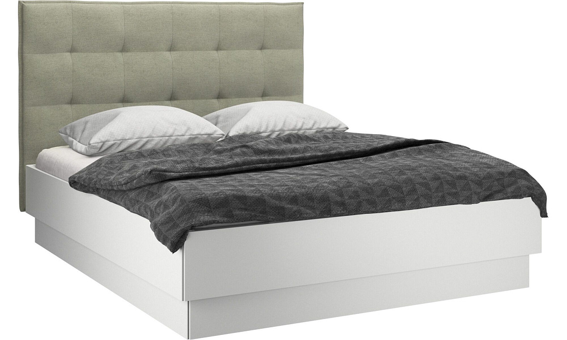 Эта современная кровать создаст атмосферу спокойствия и безмятежности в вашей спальне. Кровать с возвышенным основанием для более строгого вида подарит вам невероятный комфорт. Стеганое изголовье стало классикой. Оно создает атмосферу мягкости и уюта.