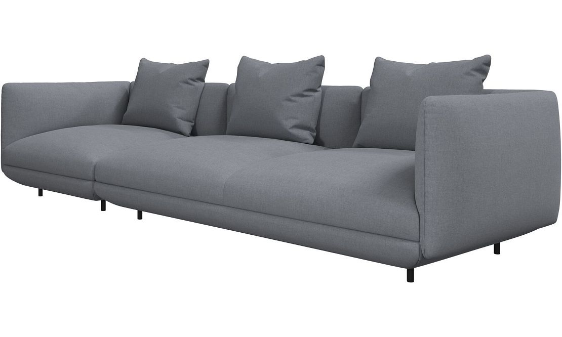 Диван Salamanca отличается щедрыми пропорциями и мягкими изгибами. Их подчеркивают тонкие, едва заметные трубчатые ножки черного цвета, создавая низкий 'парящий' силуэт.