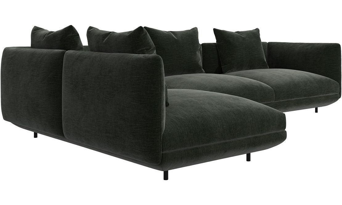 Диван Salamanca отличается щедрыми пропорциями и мягкими изгибами. Их подчеркивают тонкие, едва заметные трубчатые ножки черного цвета, создавая низкий 'парящий' силуэт.