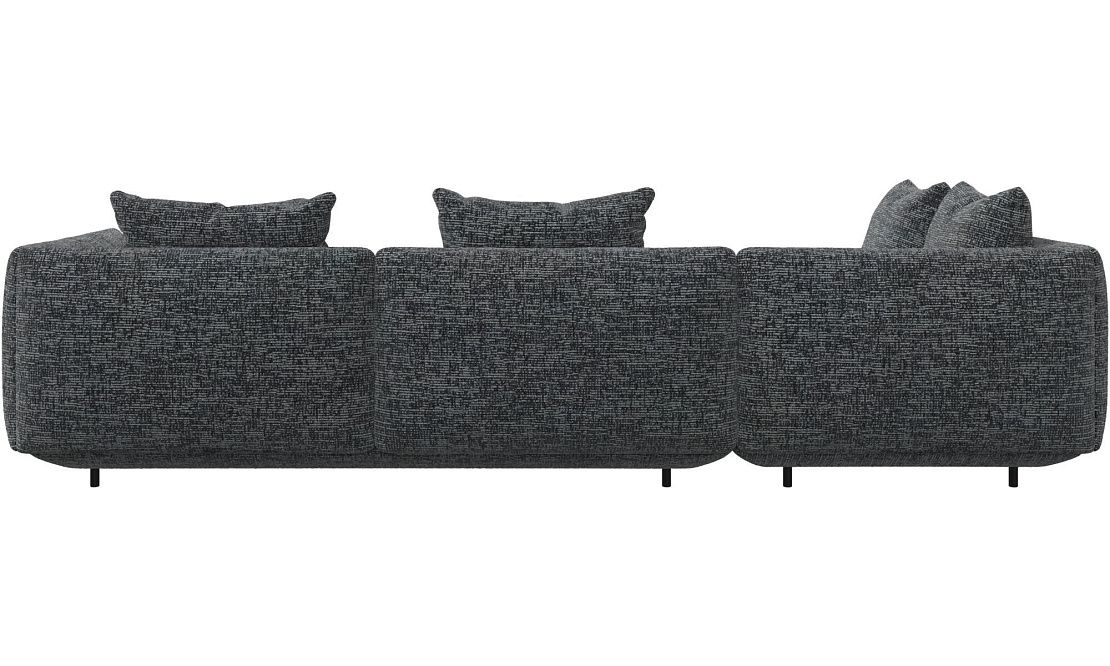 Диван Salamanca отличается щедрыми пропорциями и мягкими изгибами. Их подчеркивают тонкие, едва заметные трубчатые ножки черного цвета, создавая низкий 'парящий' силуэт.