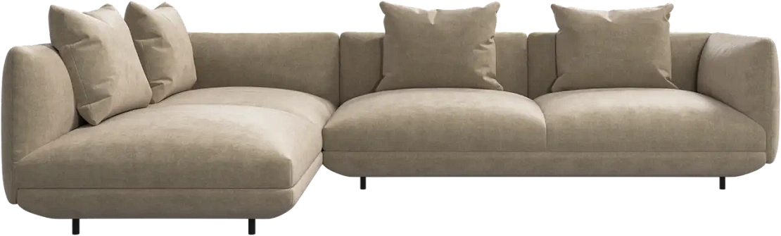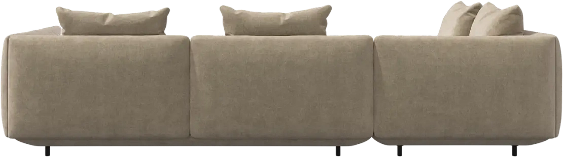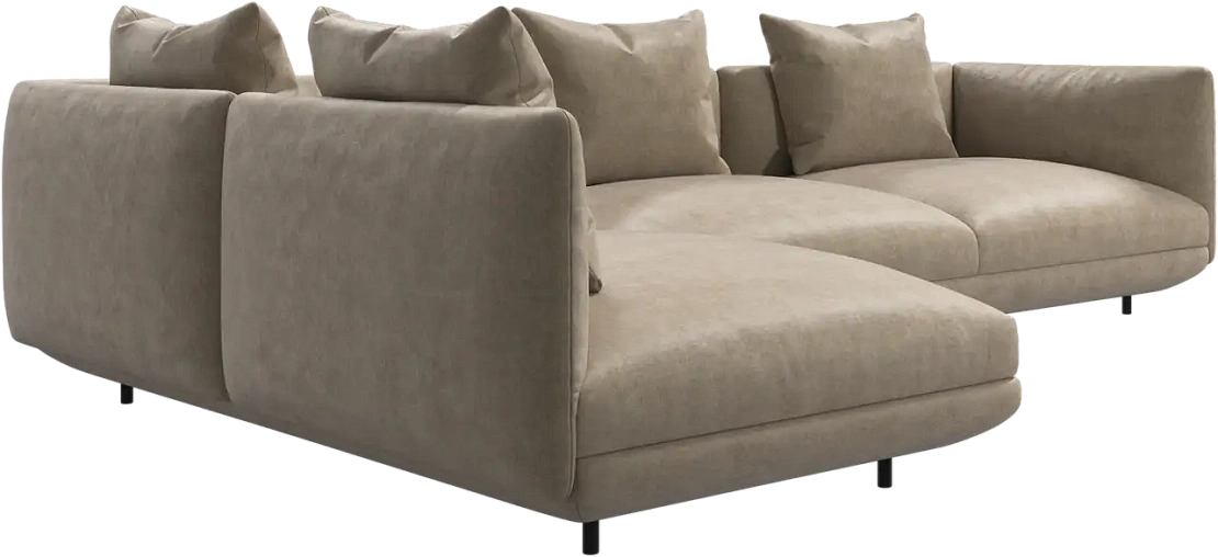Диван Salamanca отличается щедрыми пропорциями и мягкими изгибами. Их подчеркивают тонкие, едва заметные трубчатые ножки черного цвета, создавая низкий 'парящий' силуэт.