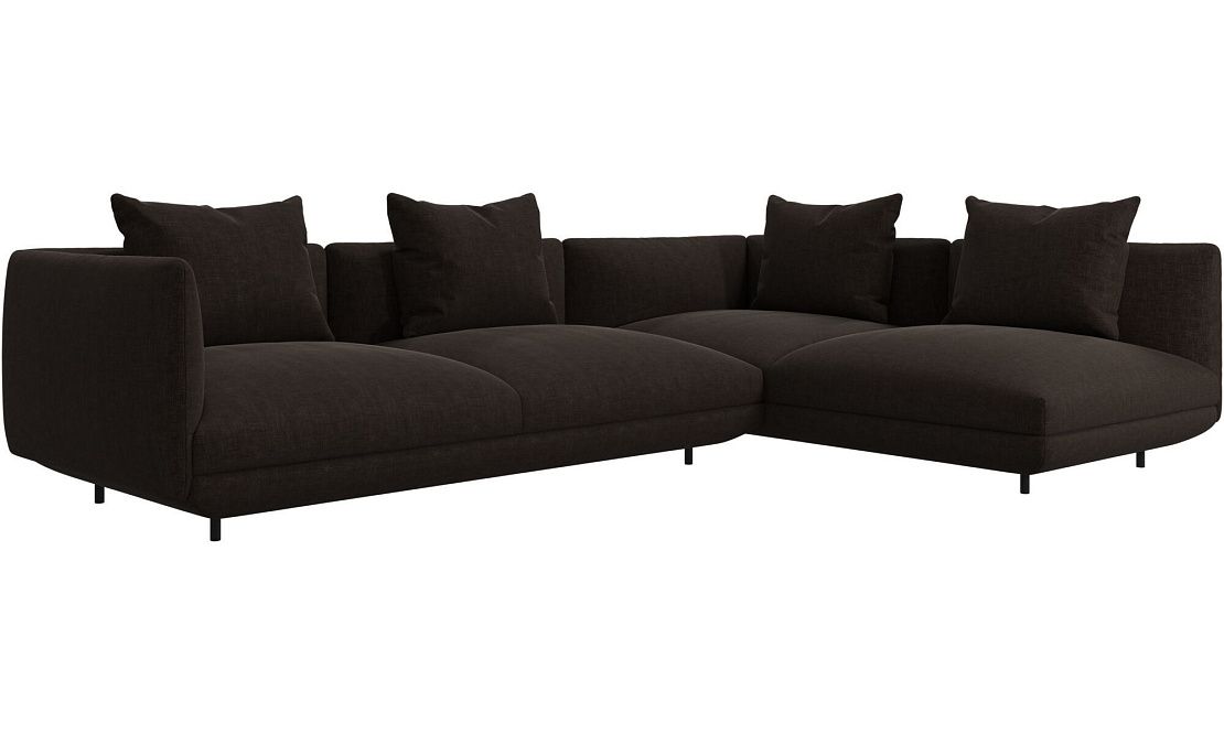 Диван Salamanca отличается щедрыми пропорциями и мягкими изгибами. Их подчеркивают тонкие, едва заметные трубчатые ножки черного цвета, создавая низкий 'парящий' силуэт.