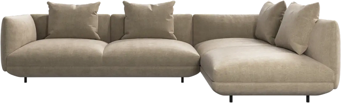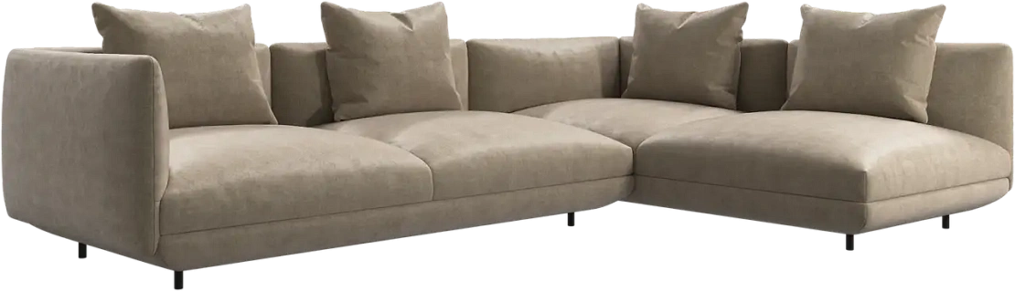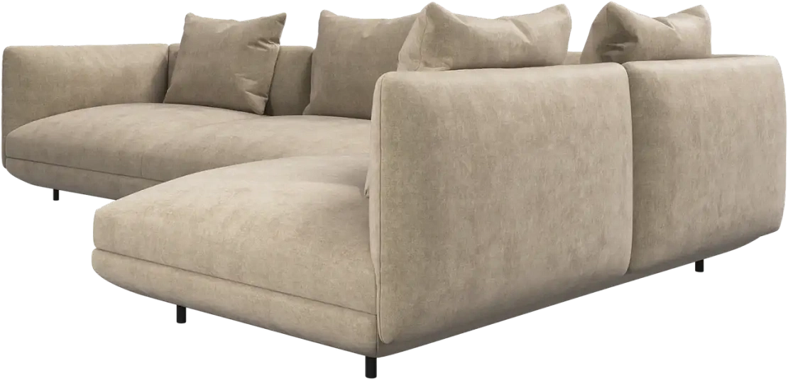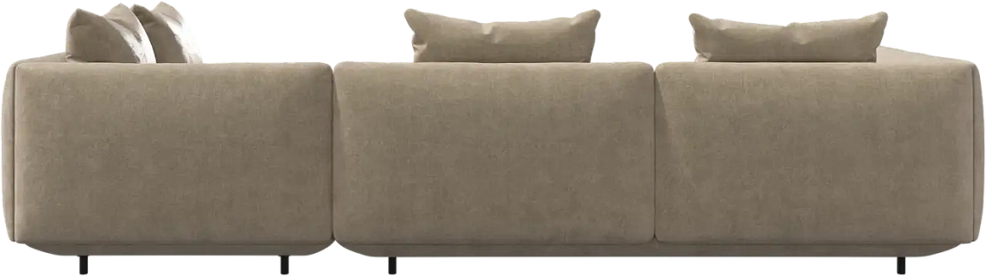 Диван Salamanca отличается щедрыми пропорциями и мягкими изгибами. Их подчеркивают тонкие, едва заметные трубчатые ножки черного цвета, создавая низкий 'парящий' силуэт.