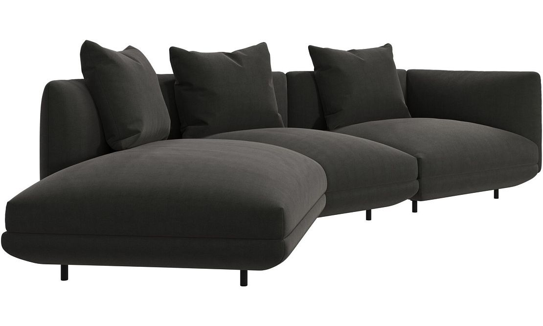 Диван Salamanca отличается щедрыми пропорциями и мягкими изгибами. Их подчеркивают тонкие, едва заметные трубчатые ножки черного цвета, создавая низкий 'парящий' силуэт.