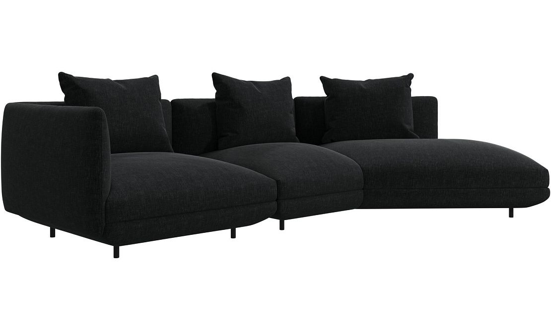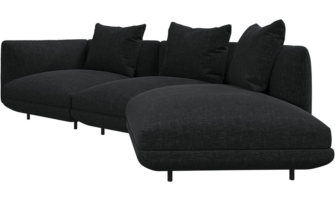 Диван Salamanca отличается щедрыми пропорциями и мягкими изгибами. Их подчеркивают тонкие, едва заметные трубчатые ножки черного цвета, создавая низкий 'парящий' силуэт.