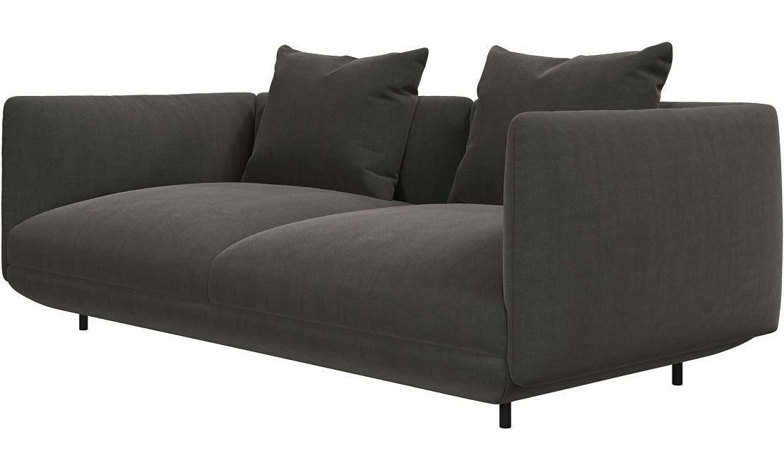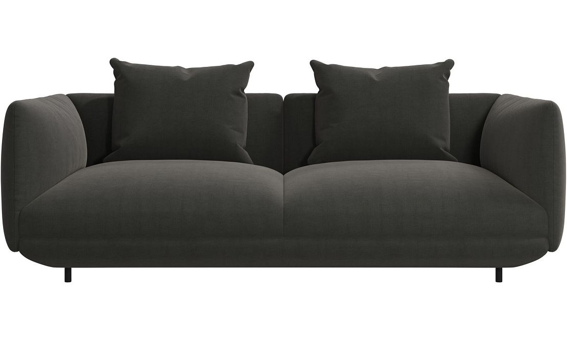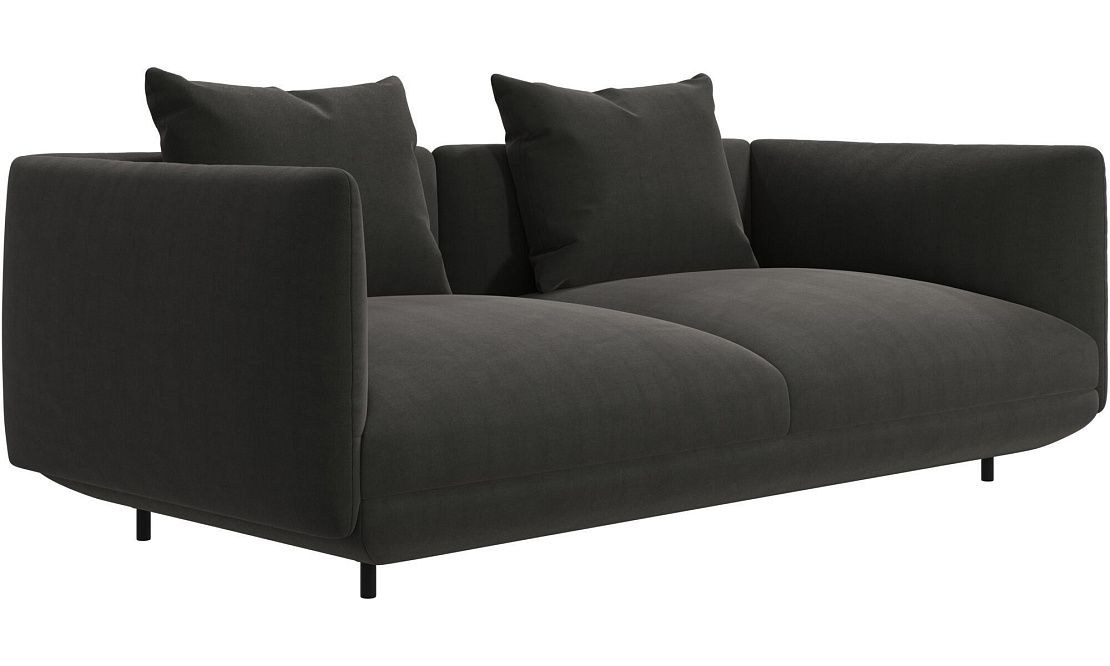 Диван Salamanca отличается щедрыми пропорциями и мягкими изгибами. Их подчеркивают тонкие, едва заметные трубчатые ножки черного цвета, создавая низкий 'парящий' силуэт.